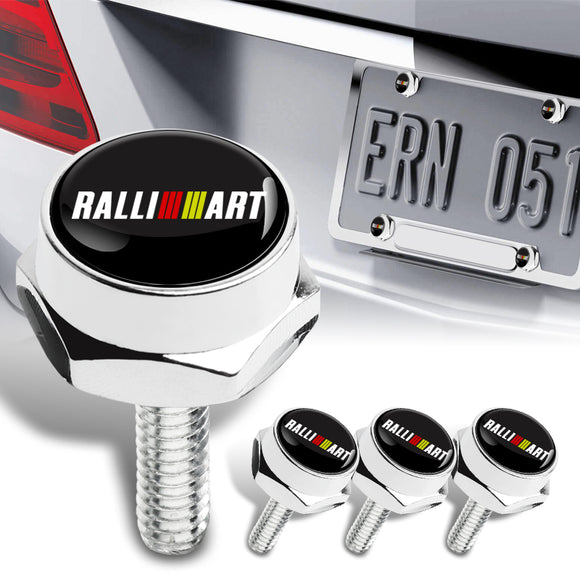 For Mitsubishi RALLIART Chrome Car License Plate Bolts Frame Screw Caps Covers