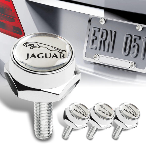 4PCS JAGUAR CHROME Car License Plate Frame Black Screw Bolt Cap Cover Screw Bolt