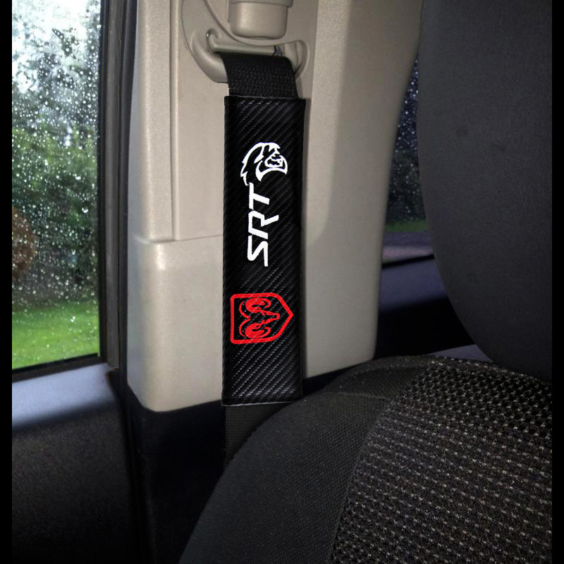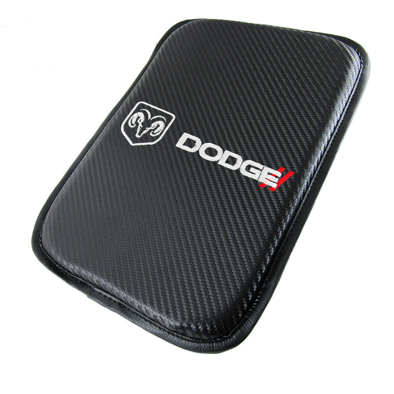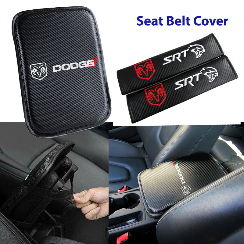 SRT DODGE Embroidered Set Armrest Cushion Center Console Cover Pad Mat with Seat Belt Cover Carbon Fiber Look