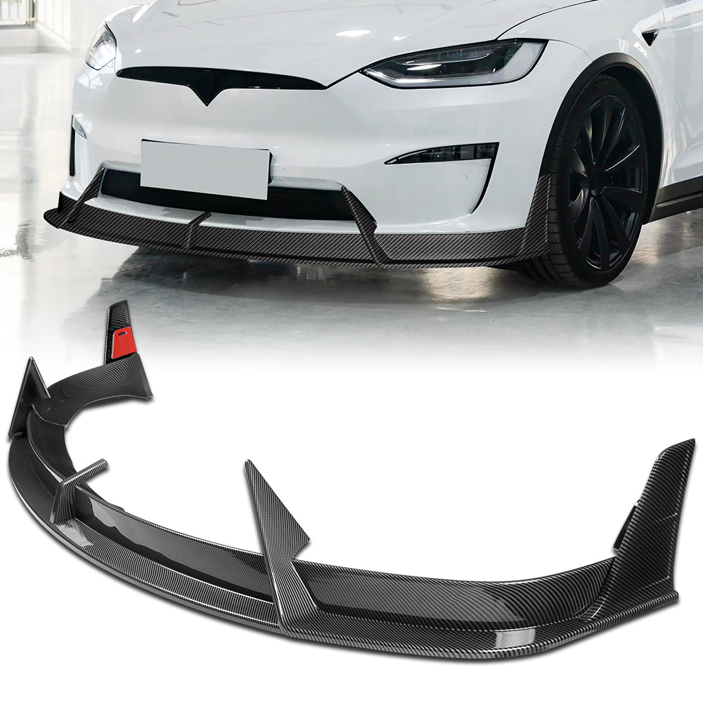 For 2022 - 2025 Tesla Model X Front Bumper Splitter Spoiler Lip 5PCS -Carbon Fiber Look