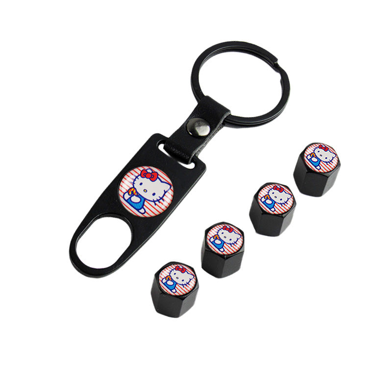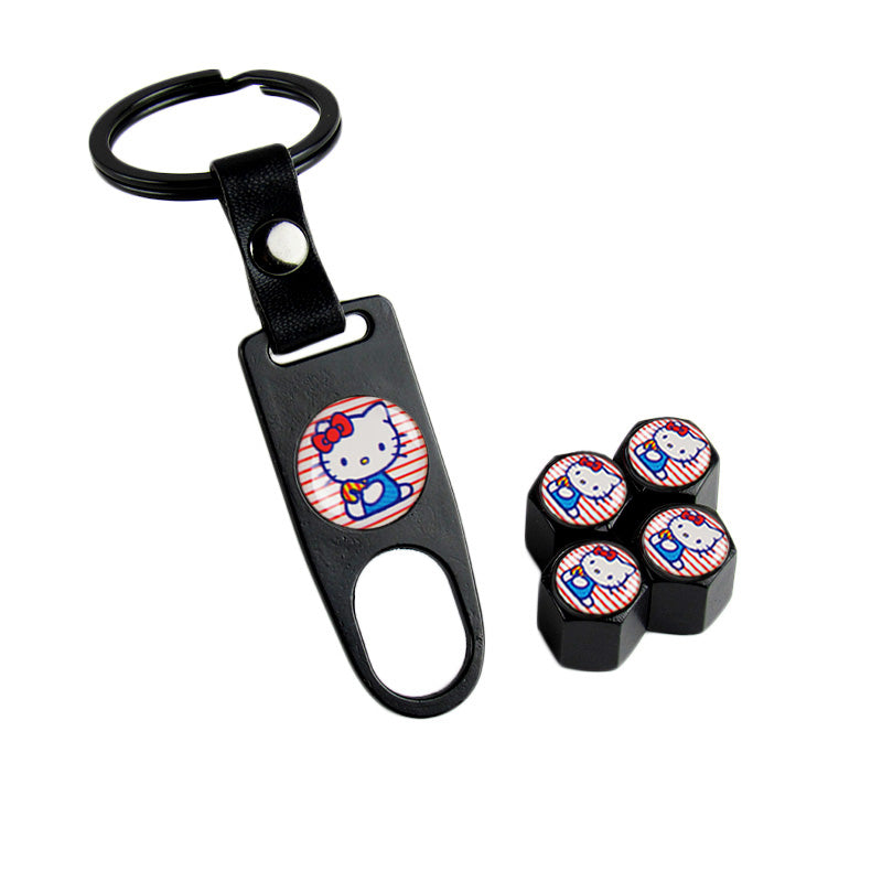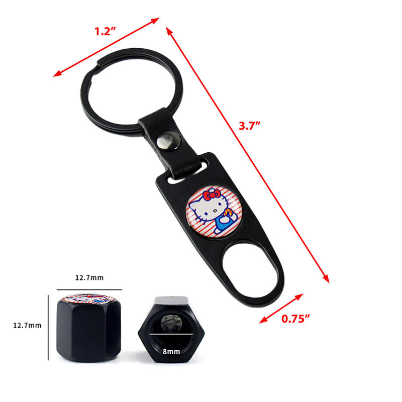 Pink Hello Kitty Car Wheel Tire Valves Dust Stem Air Caps Keychain Emblem KEY FOB Set - US SELLER
