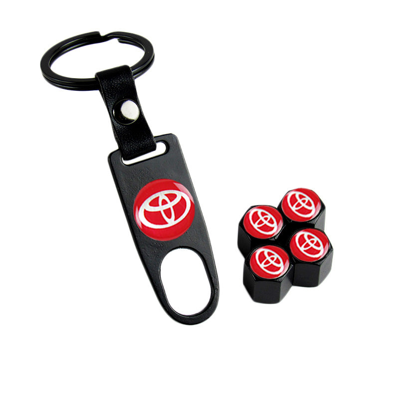 TOYOTA TRD Universal Car SUV Wheel Tire Valves Dust Stem Air Caps Keychain Emblem Black Set
