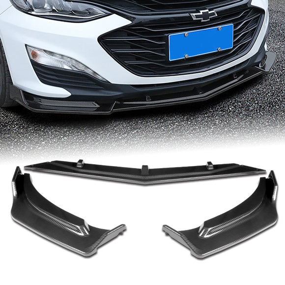 2019-2021 Chevrolet Malibu Carbon Style 3-Piece Front Bumper Body Spoiler Splitter Lip Kit with Vinyl Decal