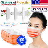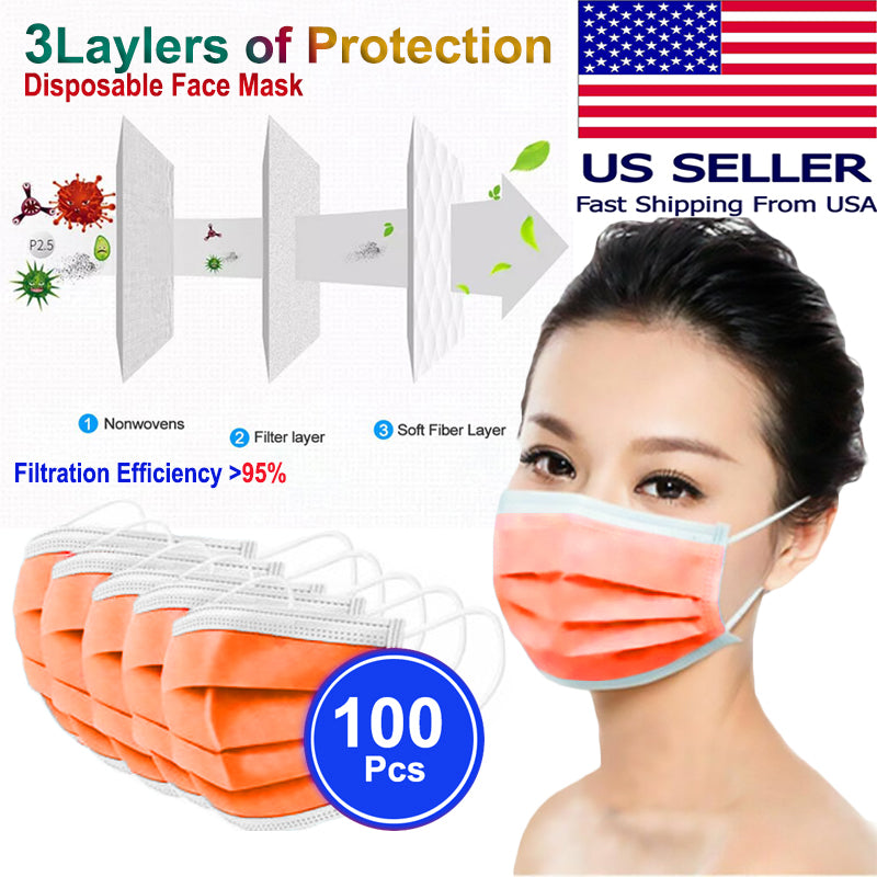 100 PCS Face Mask Non Medical Surgical Disposable 3Ply Earloop Mouth Cover - Orange (with Box)