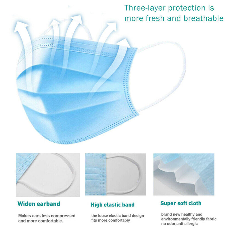Disposable Protective Face Mask with 3 Layers Filtration System for Protection Against harmful Bacteria and fluids, Leak-Proof, Anti-Droplets, Antibacterial.