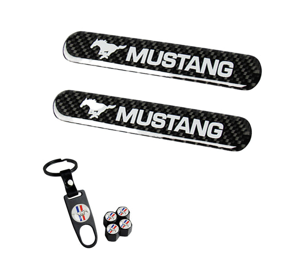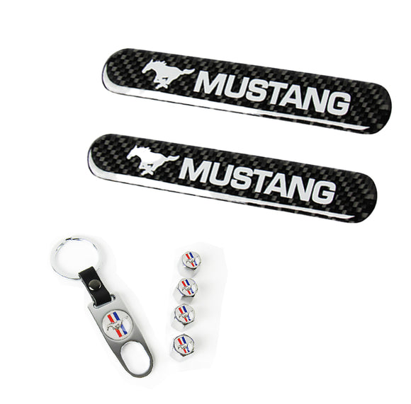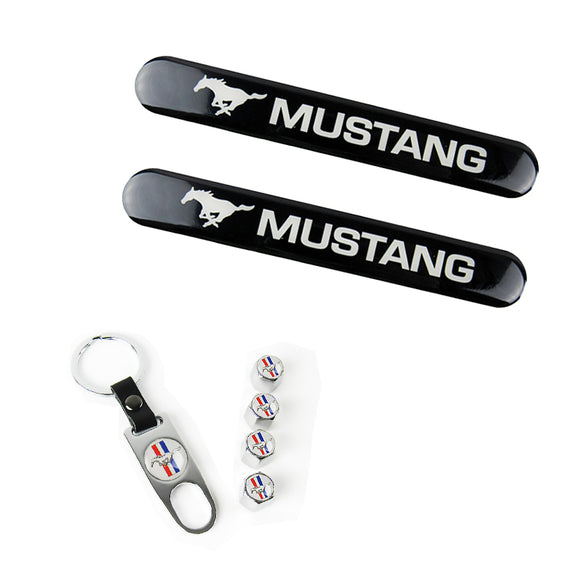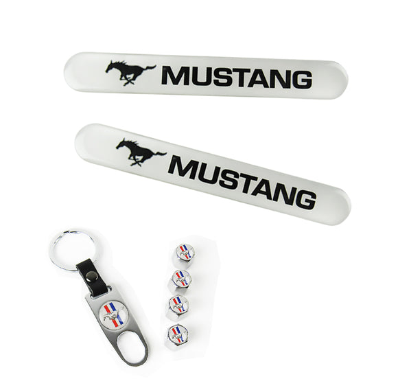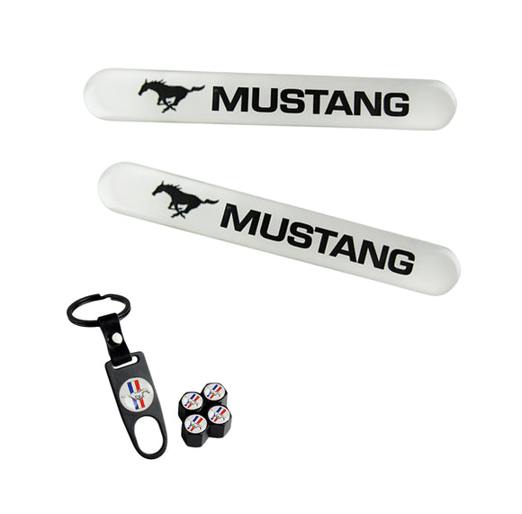Ford Mustang Set LOGO Emblems with Silver Keychain Tire Valves Wheel Air Caps - US SELLER