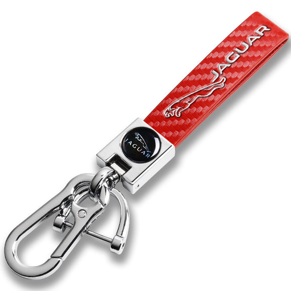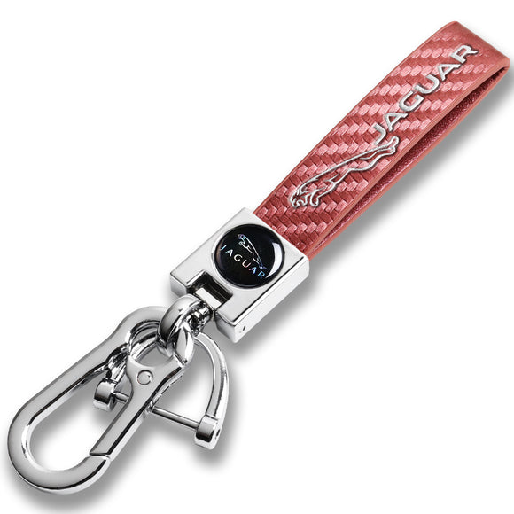 JAGUAR Universal Chrome 3D Logo Carbon Fiber Look Red Leather Metal Gift Decor Quick Release Lanyard Keychain