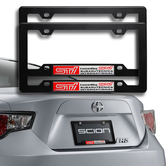 Black ABS License Plate Frame with Black Emblems For Subaru STI 2 pcs