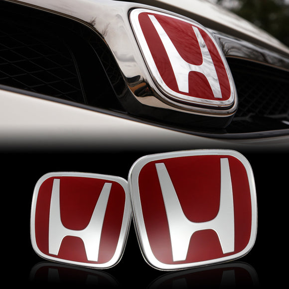 Red JDM H Emblem 2PCS Set Front & Rear For CIVIC 5DR HATCH 2016 2017 2018
