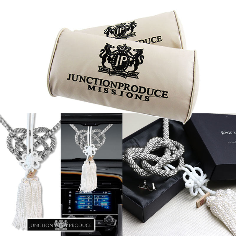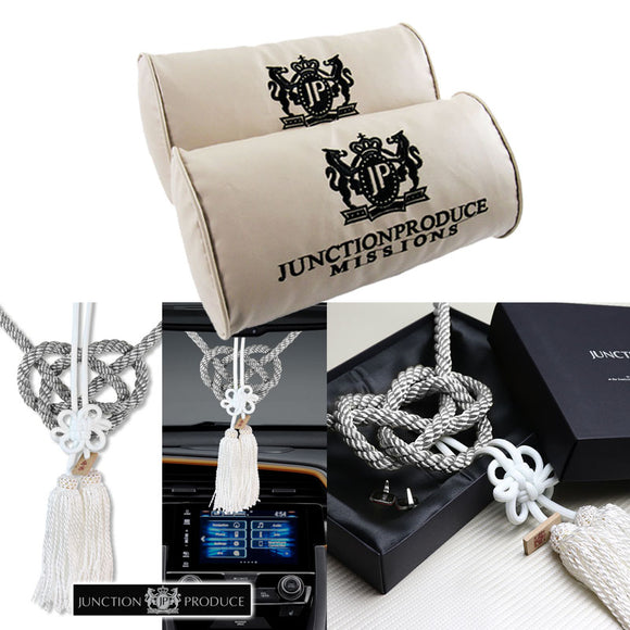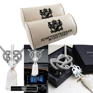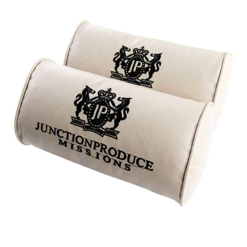 Junction Produce Set of Beige Seat Pillows & White Fusa Charm