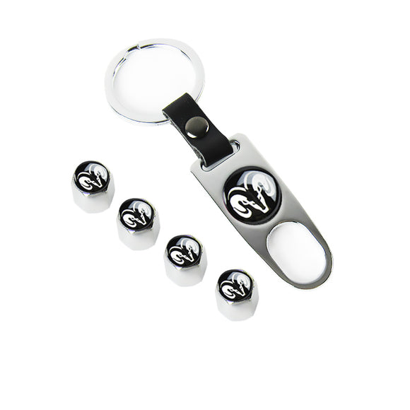 DODGE RAM Silver Car Wheel Tire Valves Dust Stem Air Caps Keychain Emblem KEY FOB Set - US SELLER