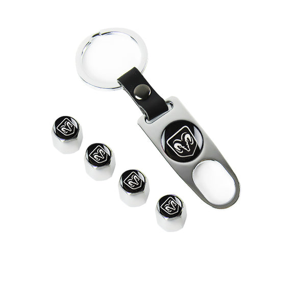 DODGE RAM Car Wheel Tire Valves Dust Stem Air Caps Keychain Emblem KEY FOB Silver Set - US SELLER