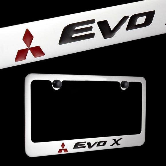Mitsubishi LANCER Evolution EVO X Plated Brass License Plate Frame w/ Chrome Cap