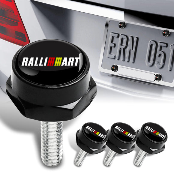 X4 JDM RALLIART Car License Plate Bolts Frame Screw Caps Covers for Mitsubishi