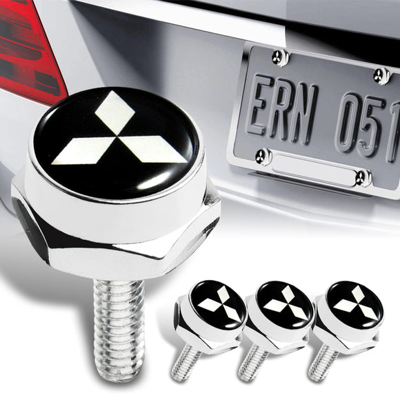 Mitsubishi 4pcs New Chrome Car License Plate Bolts Frame Screw Caps Covers