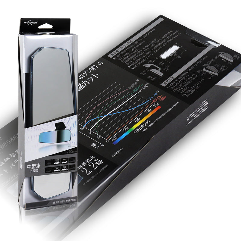 W-Power 270mm Wide Universal Interior Clip On Largest Visibility Panoramic Rear View Mirror -Clear Tint Flat
