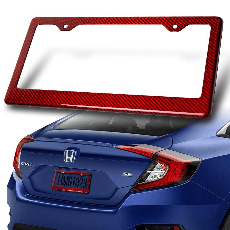 Real Red Carbon Fiber Type-1 Universal License 2 Holes Plate Frame Cover USA/CAN -1 PCS