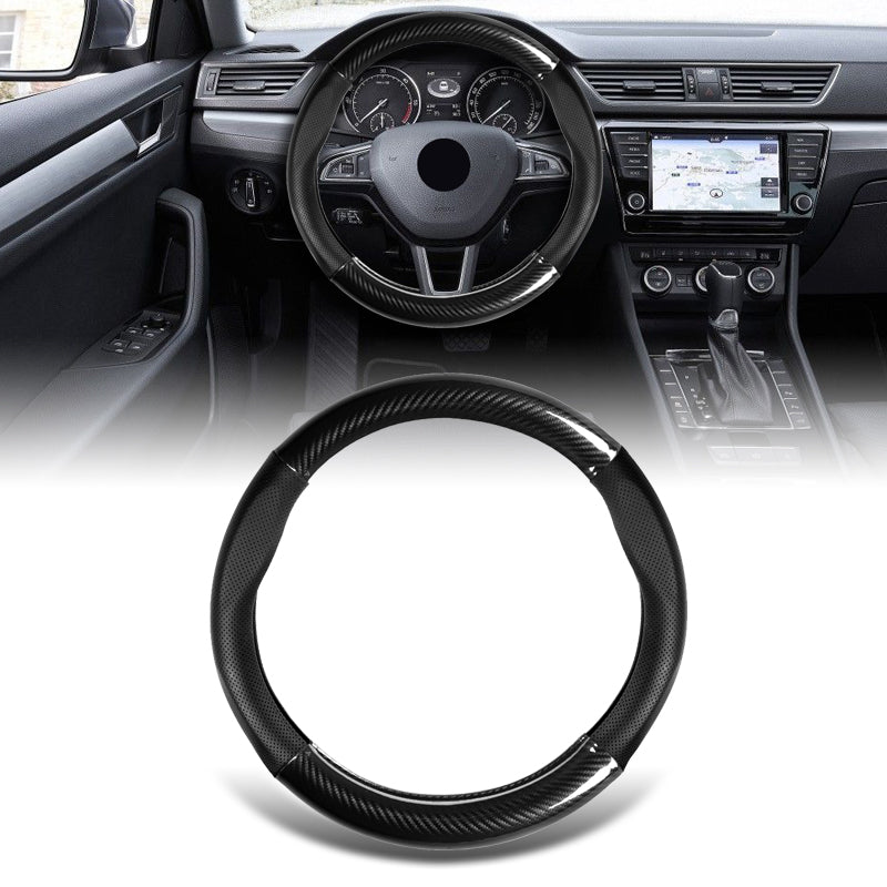 Universal 15" Carbon Fiber Style Quality Leather Car Steering Wheel Cover For All NEW x1