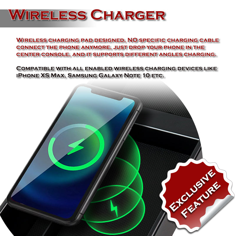 For 2015 - 2020 Ford F-150 Center Console Organizer Tray Armrest Storage Box With Wireless Charger And USB Ports