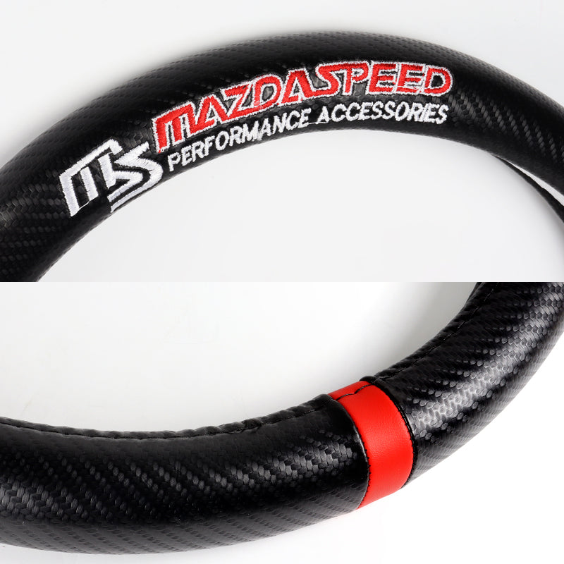 For all Mazda MazdaSpeed 15" Diameter Car Steering Wheel Cover Carbon Fiber Look Leather X1