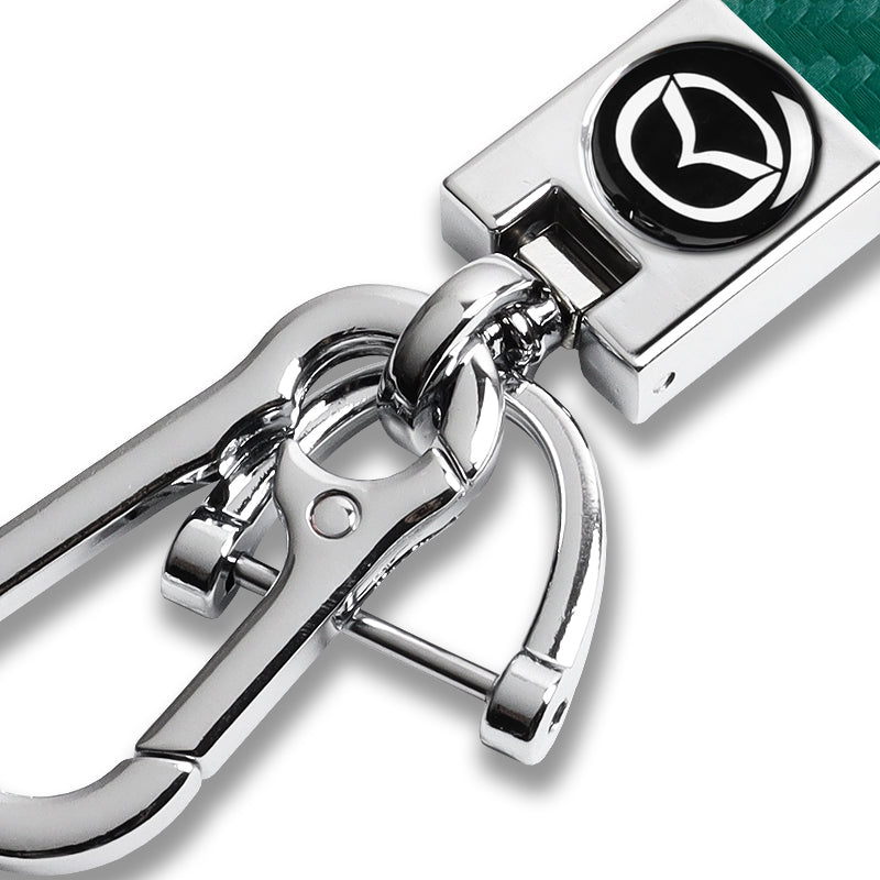 MAZDA Universal Chrome 3D Logo Carbon Fiber Look Green Leather Metal Gift Decor Quick Release Lanyard Keychain MAZDA SPEED