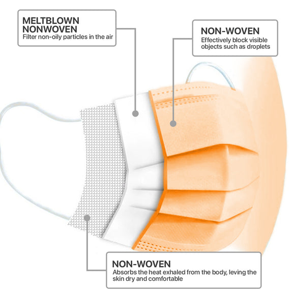 100 PCS Face Mask Non Medical Surgical Disposable 3Ply Earloop Mouth Cover - Orange (with Box)
