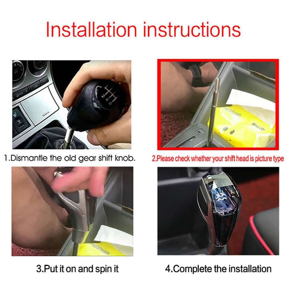 • Easy install, simply twist and remove the stock shift knob and replace with this led light touch activated shift knob.