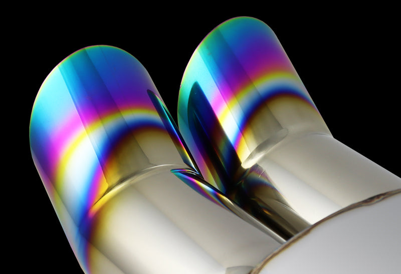 DTM Dual Angle Tip Style Universal 2.5" Inlet 3" Outlet Deep And Smooth Tone Weld-On T-304 Exhaust Muffler -Rainbow Burnt