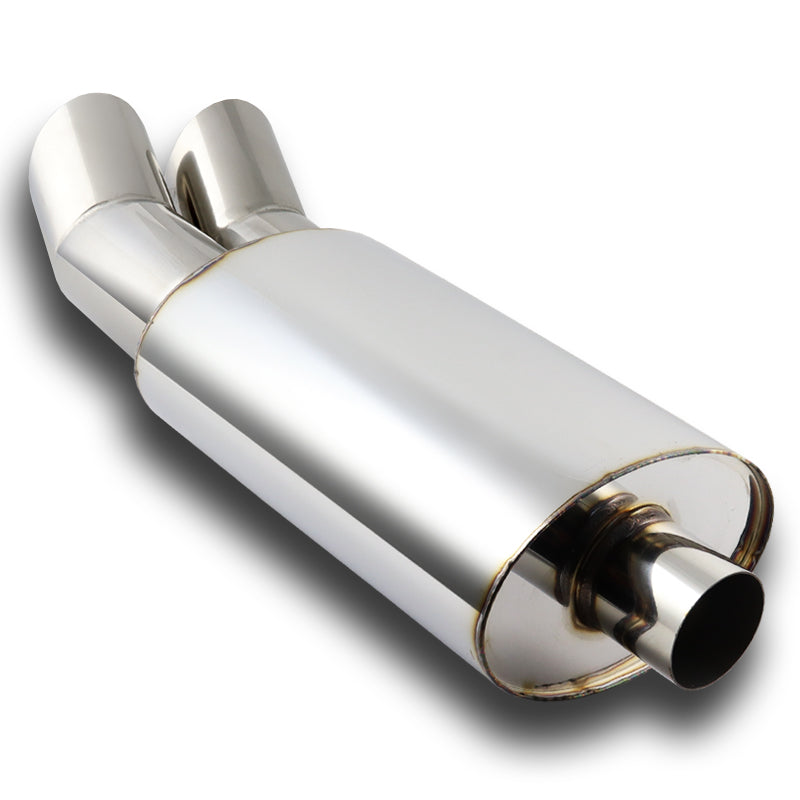 DTM Dual Angle Tip Style Universal 2.5" Inlet 3" Outlet Deep And Smooth Tone Weld-On T-304 Exhaust Muffler -Chrome