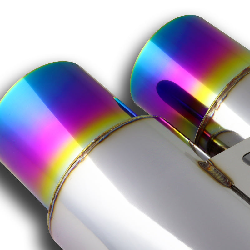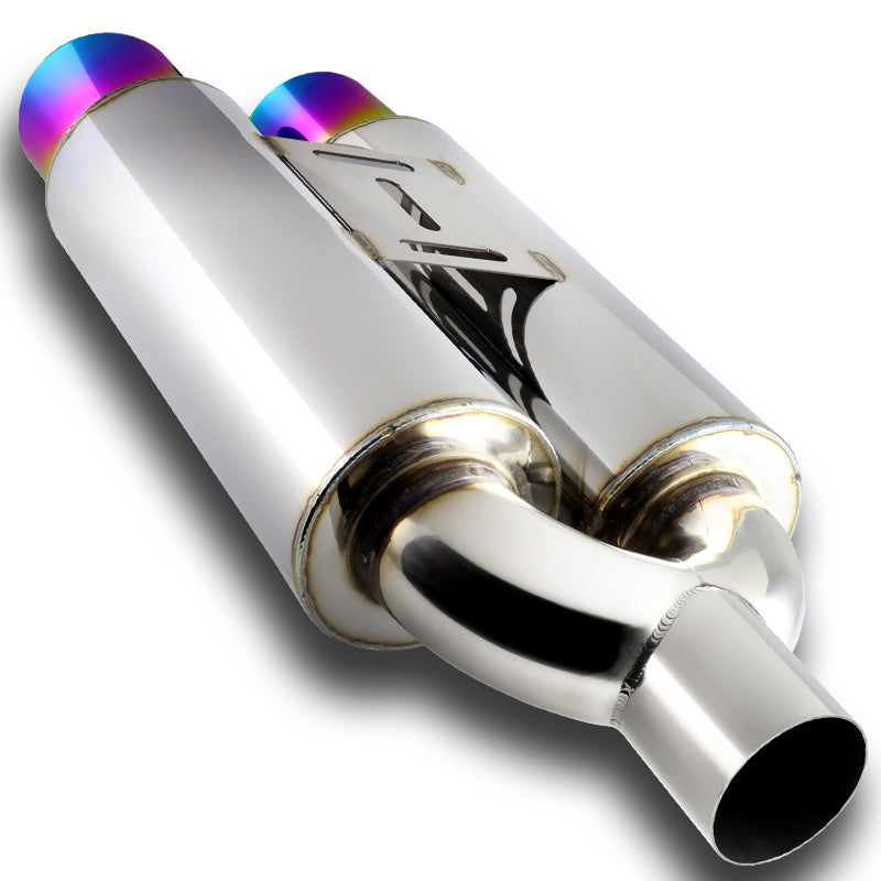 DTM Dual Body Slant Tip Style Universal 2.5" Inlet 3.5" Outlet Deep And Smooth Tone, Removable Silencer Pre-attached, Weld-On T-304 Exhaust High Flow Dual Tip Muffler -Blue Burnt Tip
