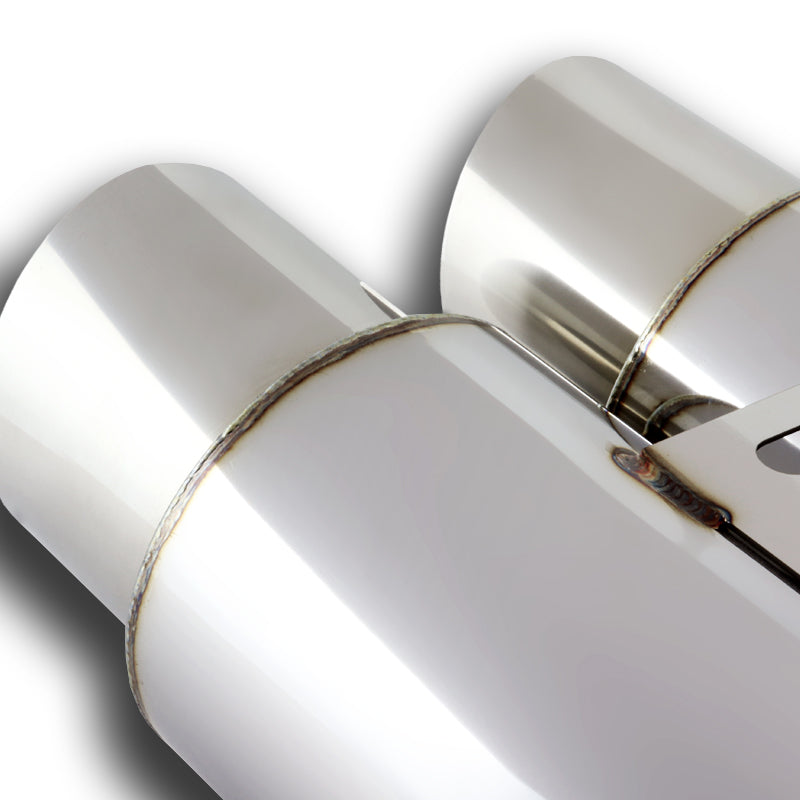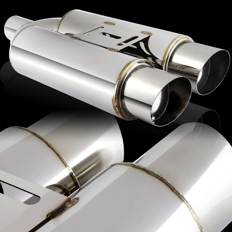 DTM Dual Body Slant Tip Style Universal 2.5" Inlet 3.5" Outlet Deep And Smooth Tone, Removable Silencer Pre-attached, Weld-On T-304 Exhaust High Flow Dual Tip Muffler -Chrome