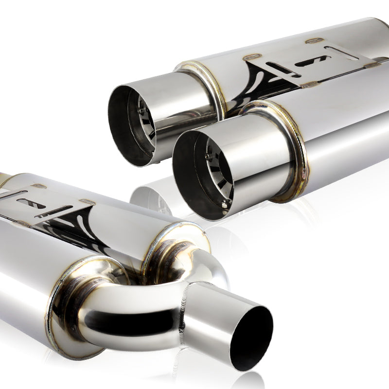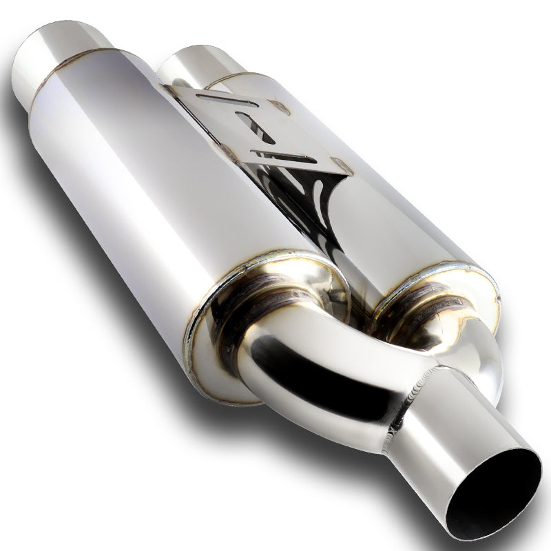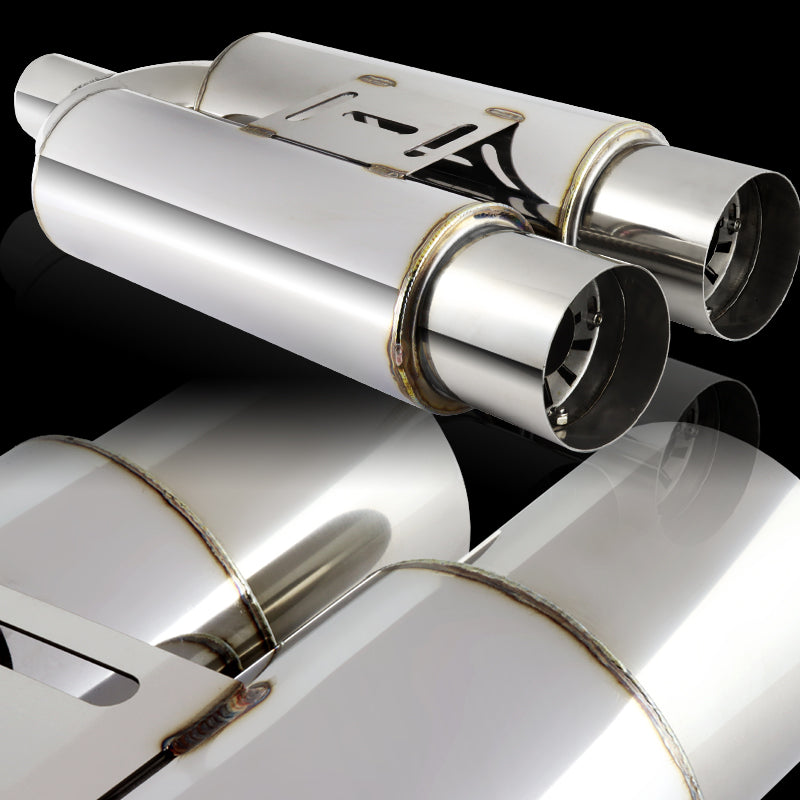 DTM Dual Body Tip Style Universal 2.5" Inlet 3.5" Outlet Deep And Smooth Tone Weld-On T-304 Exhaust High Flow Dual Tip Muffler -Chrome