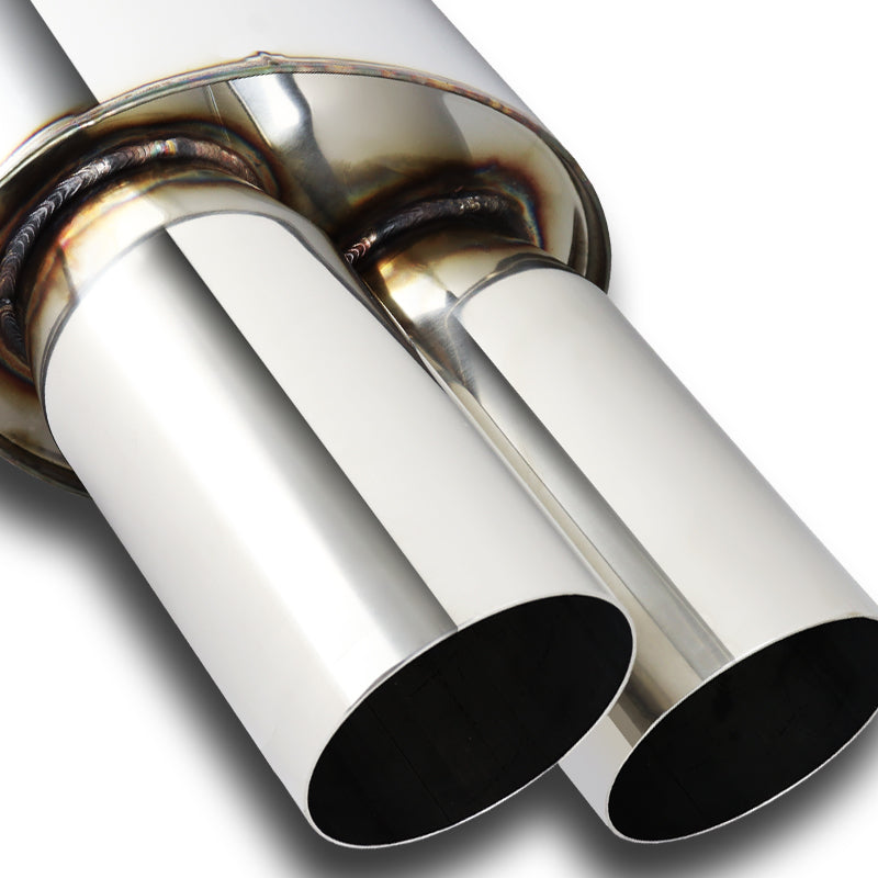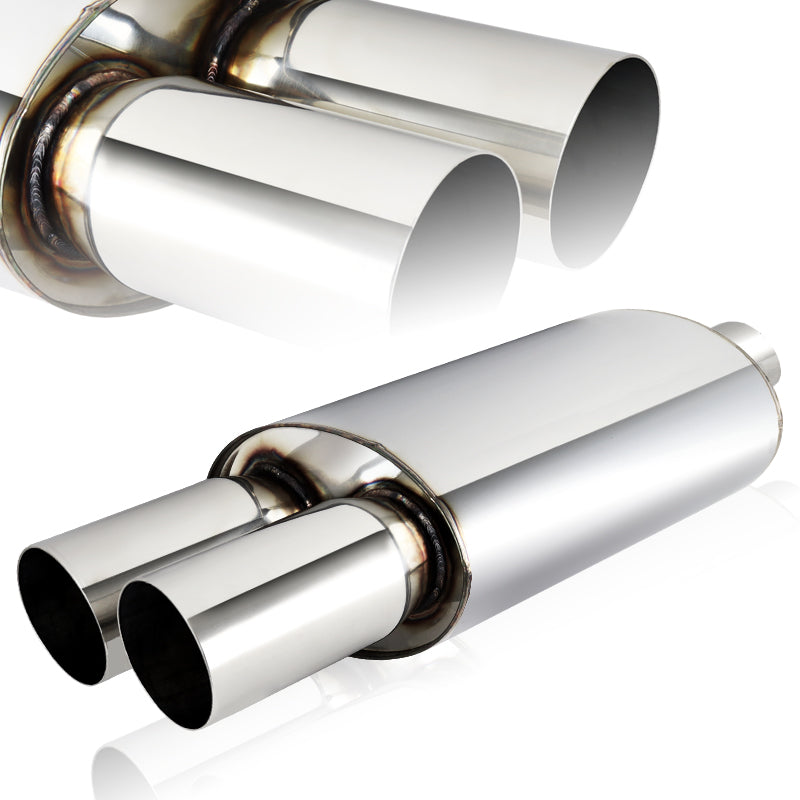 DTM Dual Tip Style Universal 2.5" Inlet 3" Outlet Deep And Smooth Tone Weld-On T-304 Exhaust High Flow Dual Tip Muffler -Chrome