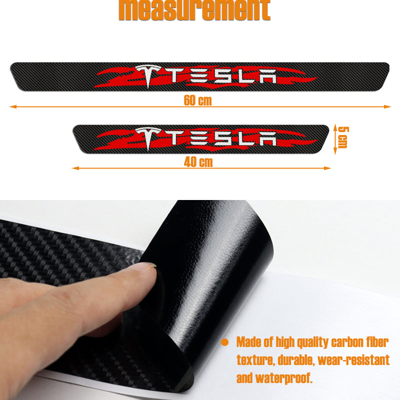 For TESLA NEW 4PCS Set 5D Carbon Fiber Texture Car Door Scuff Sill Cover Panel Step Protector