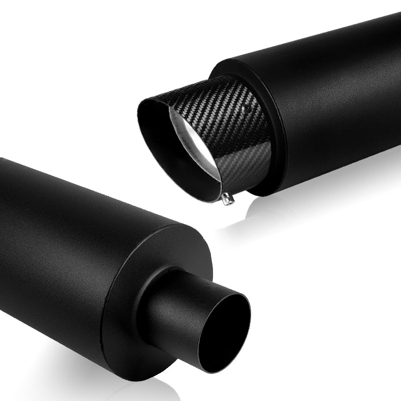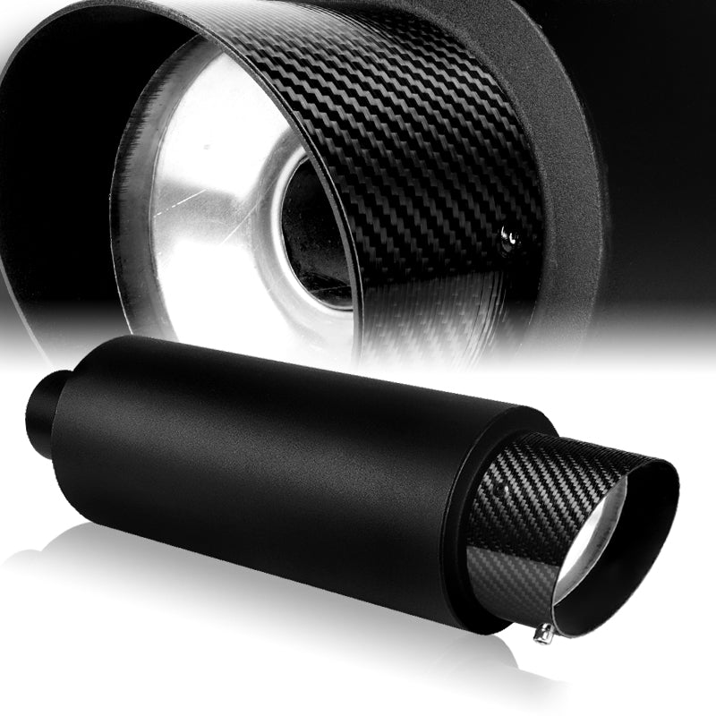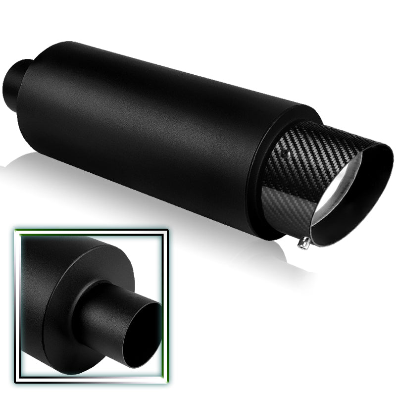 JDM N1 Fireball Slant Style Universal 2.5" Inlet 4" Outlet Deep And Smooth Tone, Removable Silencer Pre-attached, Weld-On T-304 Exhaust High Flow Muffler -Black With Real Carbon Fiber Tip