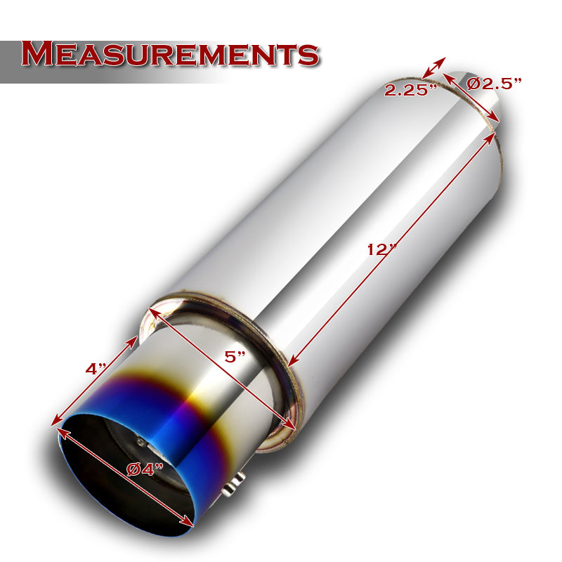 JDM N1 Style Universal 2.5" Inlet 4" Outlet Deep And Smooth Tone, Removable Silencer Pre-attached, Weld-On T-304 Exhaust Muffler -Burnt Tip