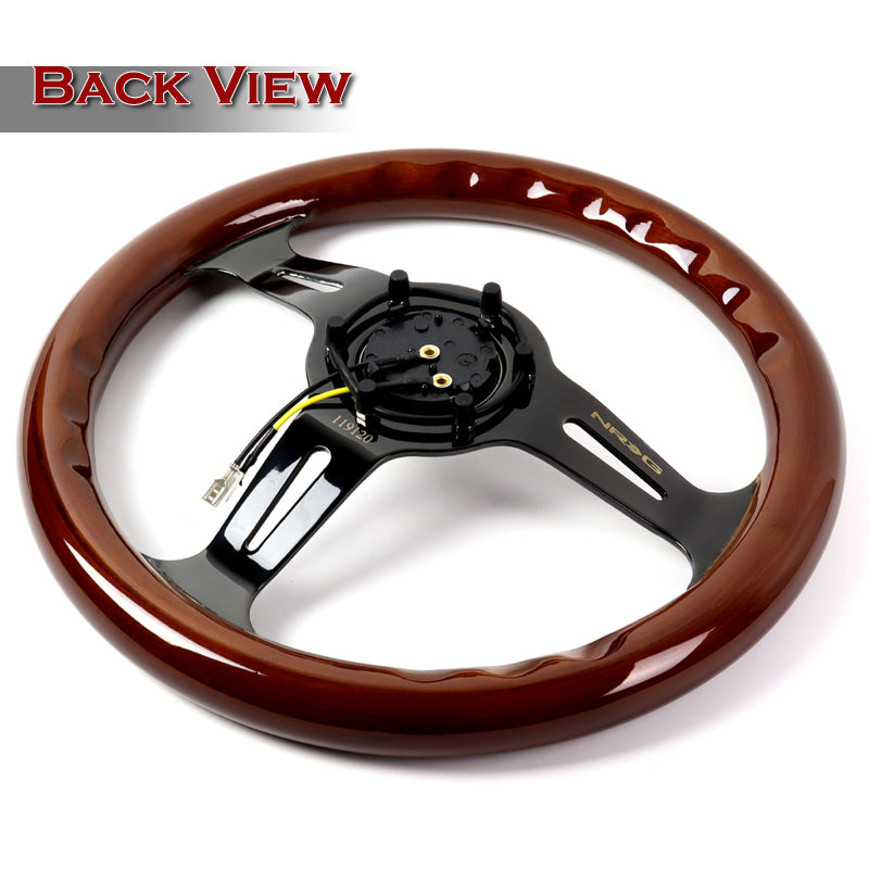NRG 12" 310mm 6-Bolt Hole Dark Wood Grain Grip Aluminum Finished 3-Spoke Steering Wheel ST-310BRB-BK -Black Chrome Spoke
