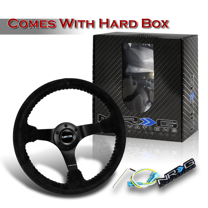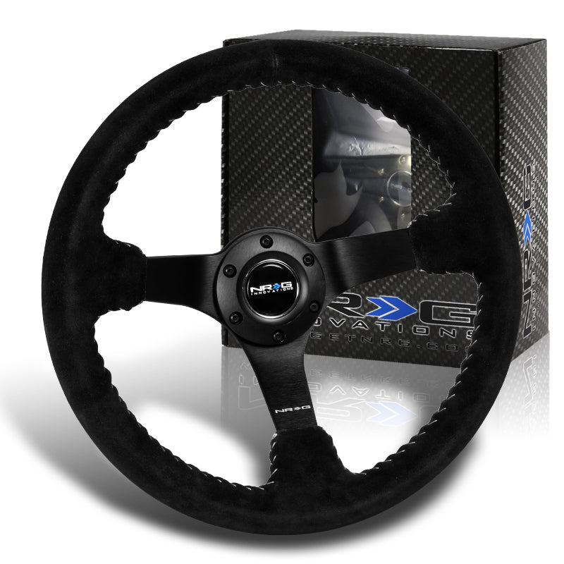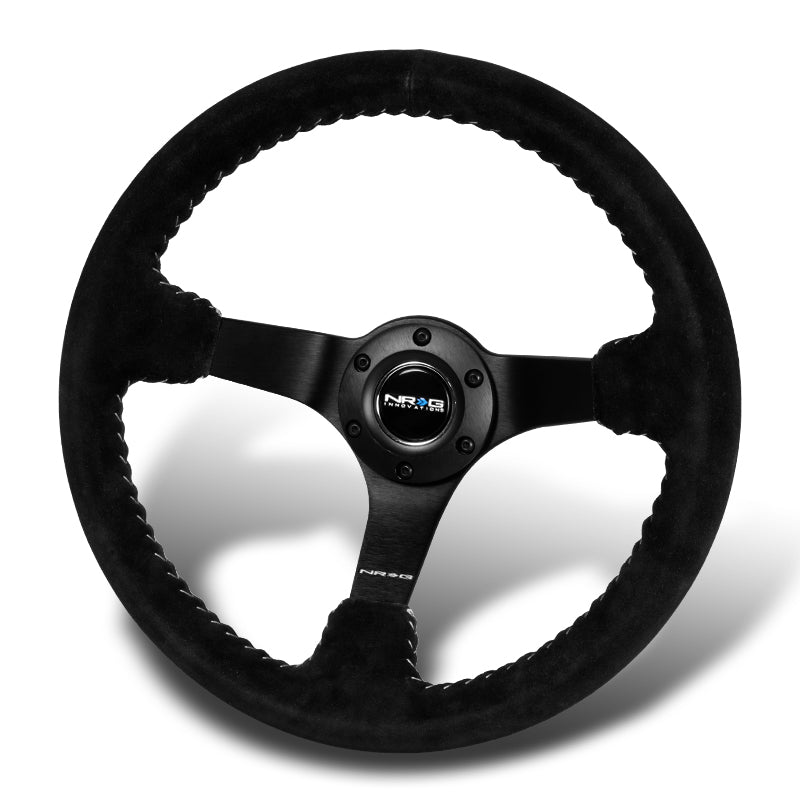 NRG 13.75" 350mm 6-Bolt Hole Premium Black Suede With Silver Stitch Grip Aluminum Finished 3-Spoke 3 Inch Deep Dish Racing Steering Wheel RST-036MB-S-SL -Matte Black Spoke