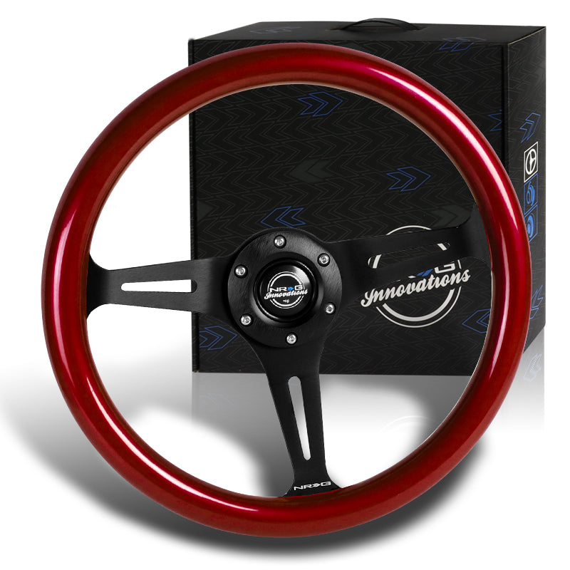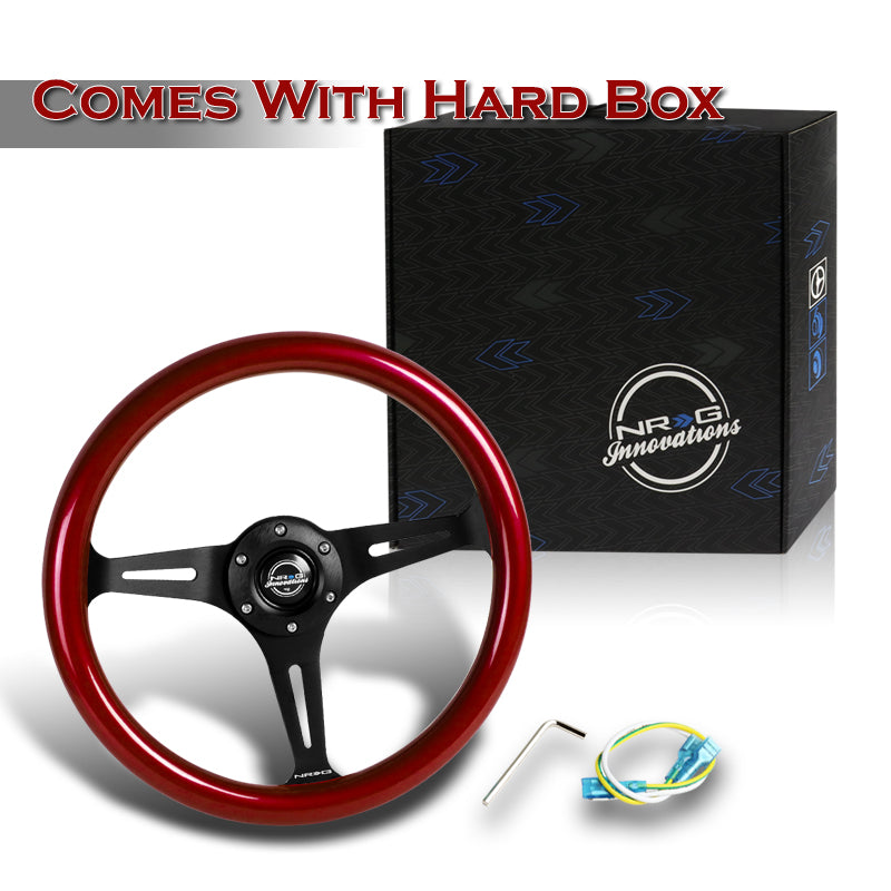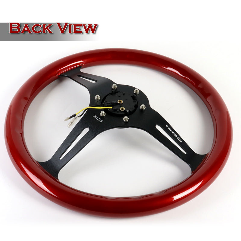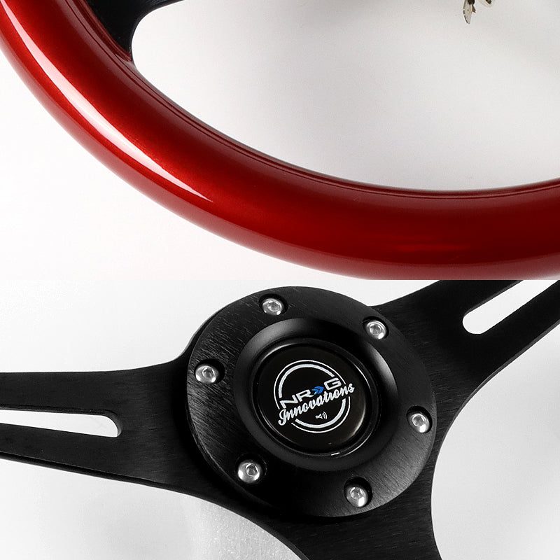 NRG 13.75" 350mm 6-Bolt Hole Red Classic Wood Grip Aluminum Finished 3-Spoke Steering Wheel ST-015BK-RD -Black Spoke