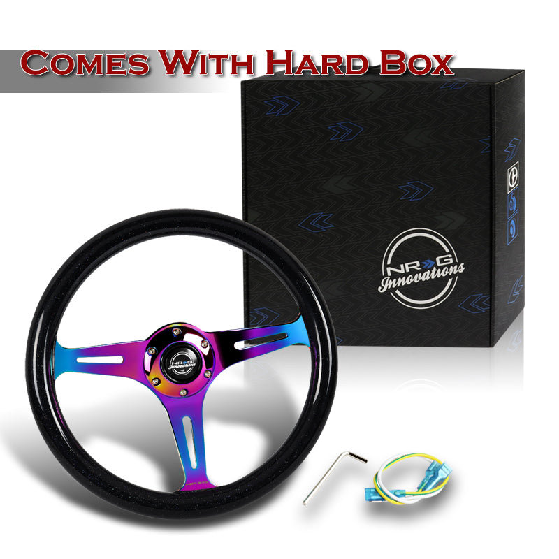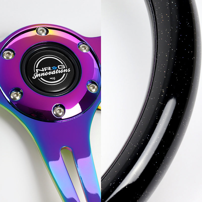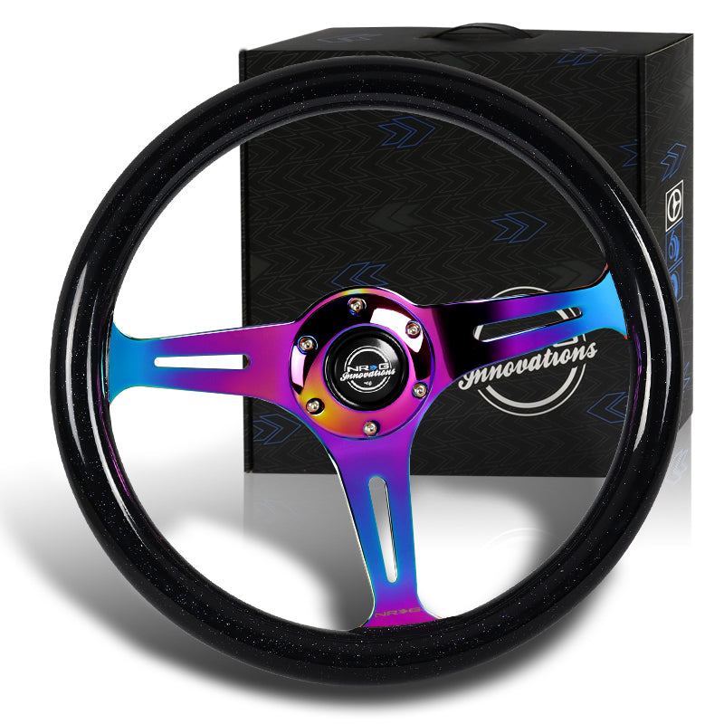 NRG 14" 350mm 6-Bolt Hole Black Sparkled Wood Grain Grip Aluminum Finished 3-Spoke Steering Wheel ST-015MC-BSB -Neo Chrome Spoke