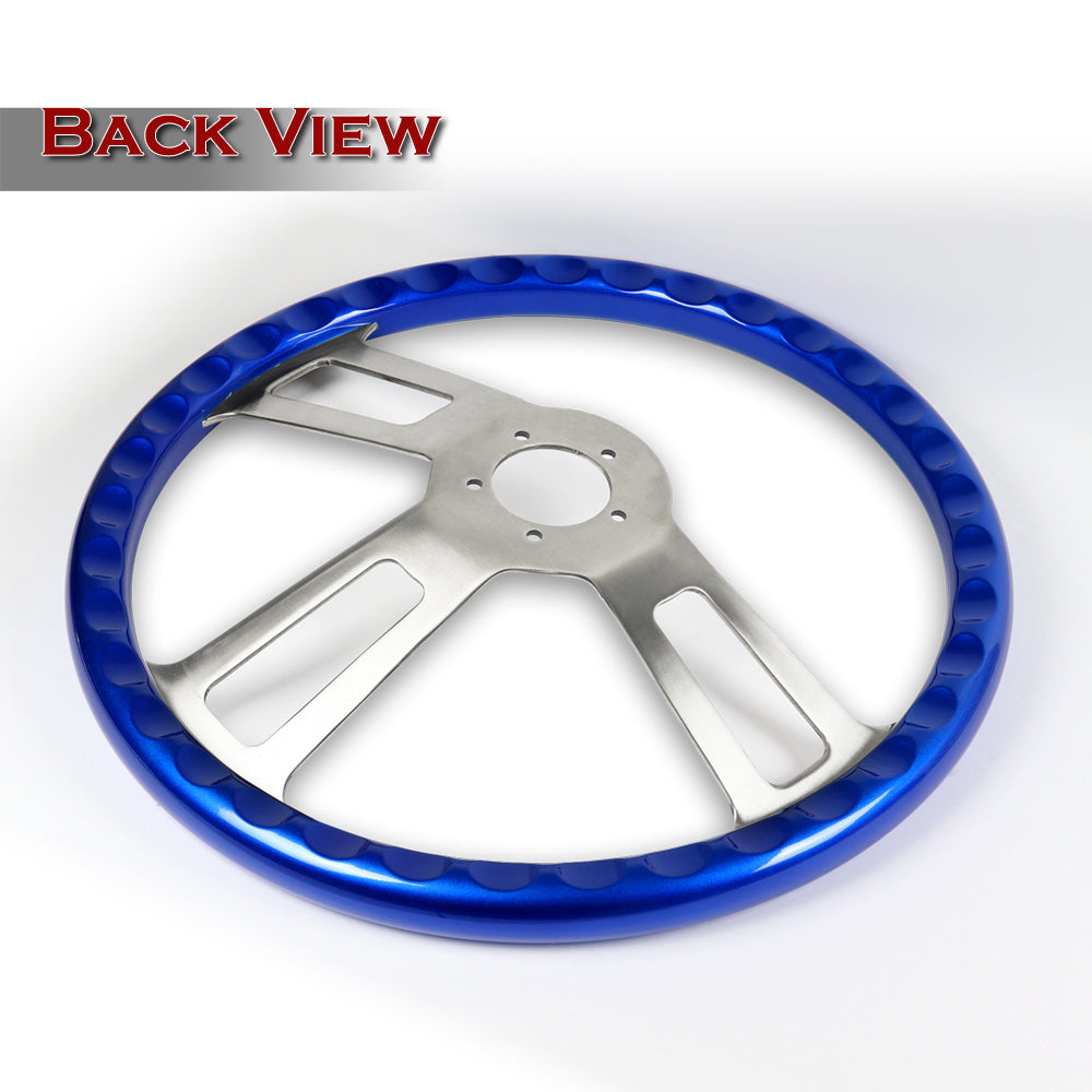 W-Power 17" 432mm 5-Bolt Hole With Aluminum Finished 3-Spoke Steering Wheel -Blue Wood Grip/Billet Center Spoke