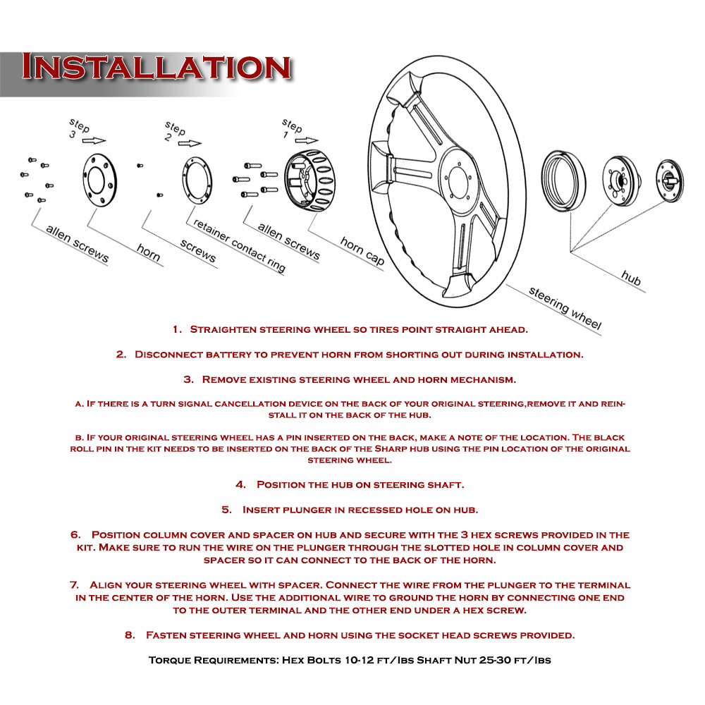 • Fit any standard aftermarket 5-hole steering wheel hub adapter