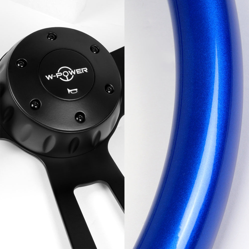 W-Power 17" 432mm 5-Bolt Hole With Aluminum Finished 3-Spoke Steering Wheel -Blue Wood Grip/Black Center Spoke