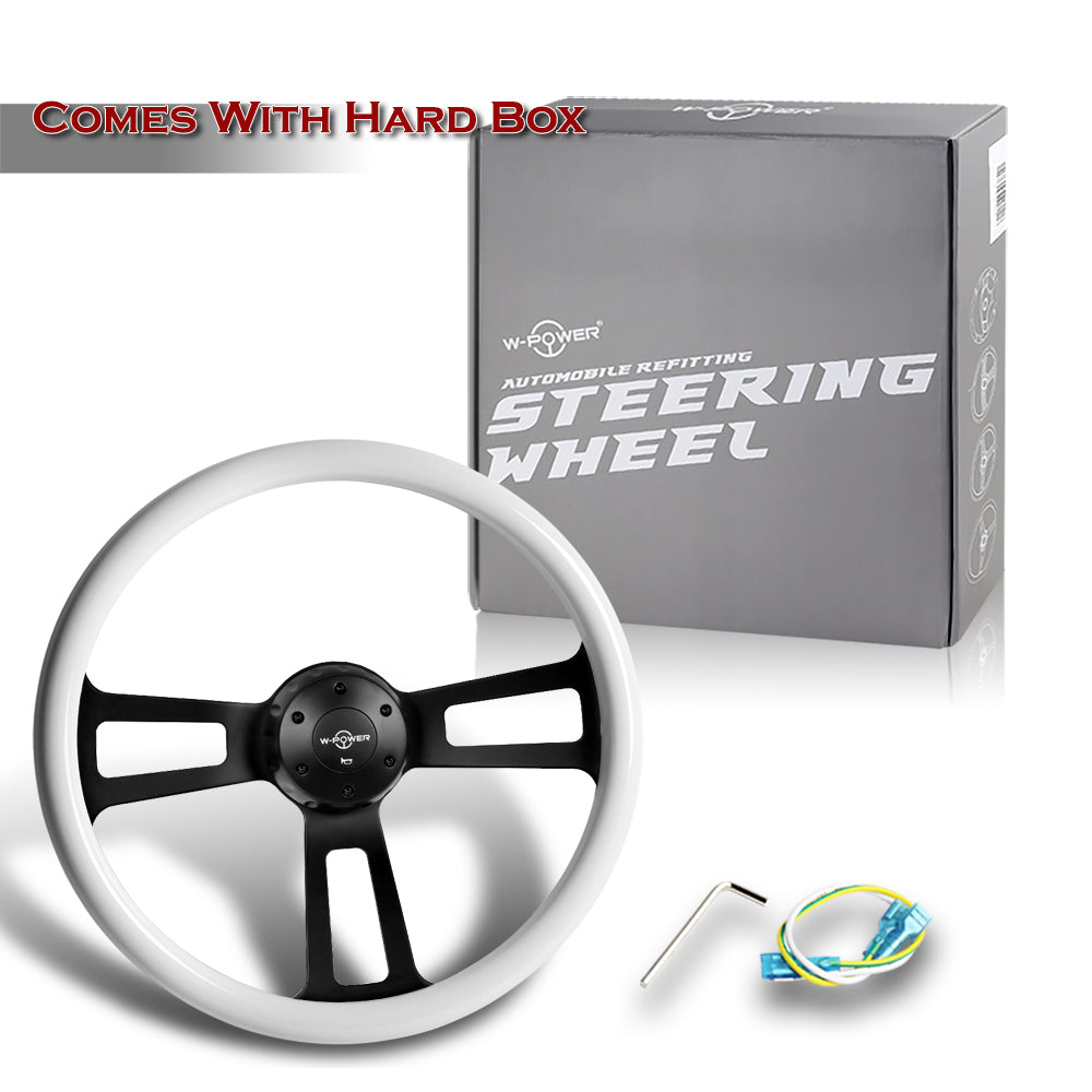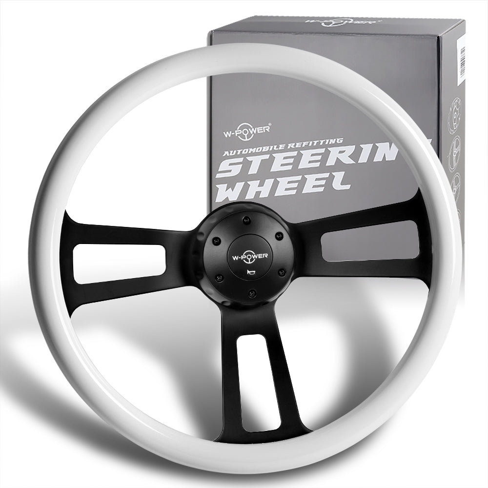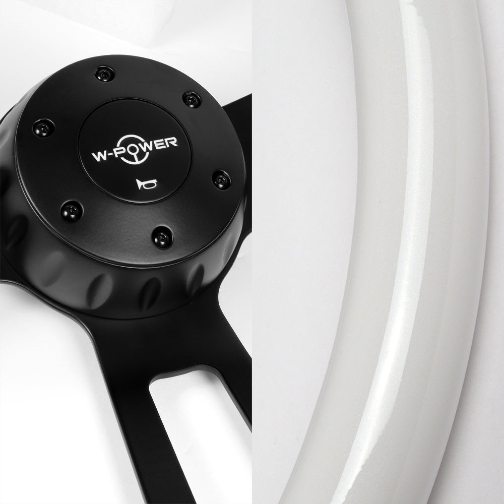 W-Power 17" 432mm 5-Bolt Hole With Aluminum Finished 3-Spoke Steering Wheel -White Wood Grip/Black Center Spoke