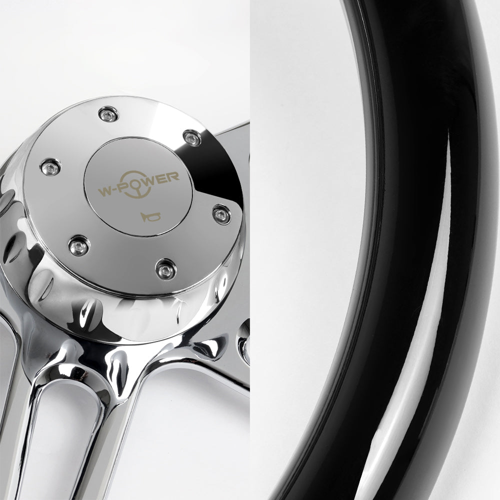 • 457mm 18 Inches W-Power Chrome Vintage 4-Spoke Center Steering Wheel