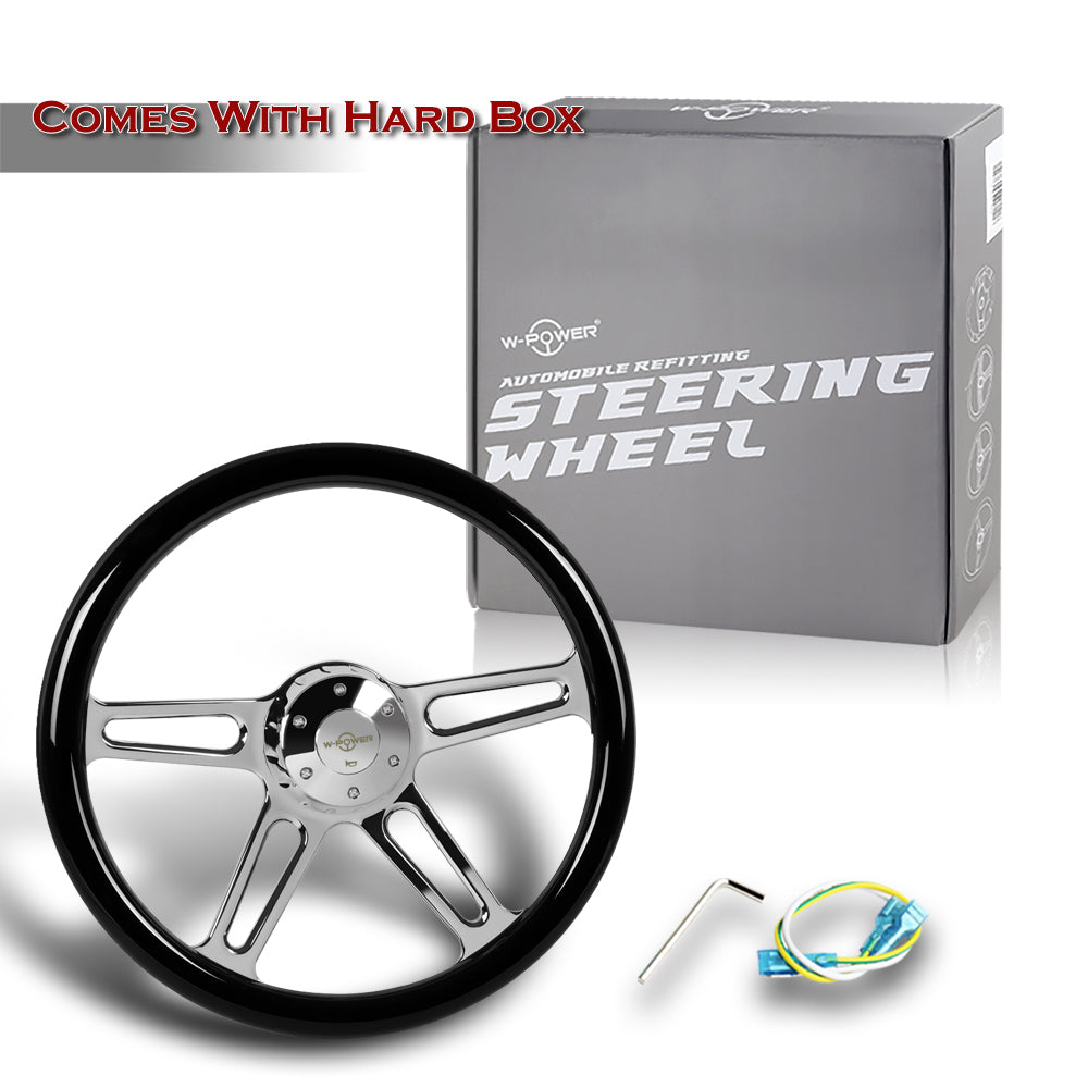 W-Power 18" 457mm 5-Bolt Hole With Aluminum Finished 4-Spoke Half Wrap Steering Wheel -Black Wood Grip/Chrome Center Spoke