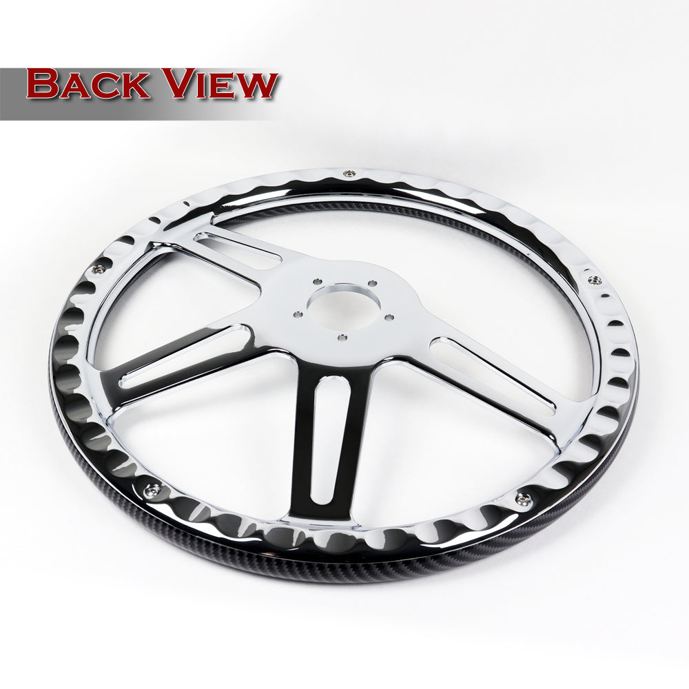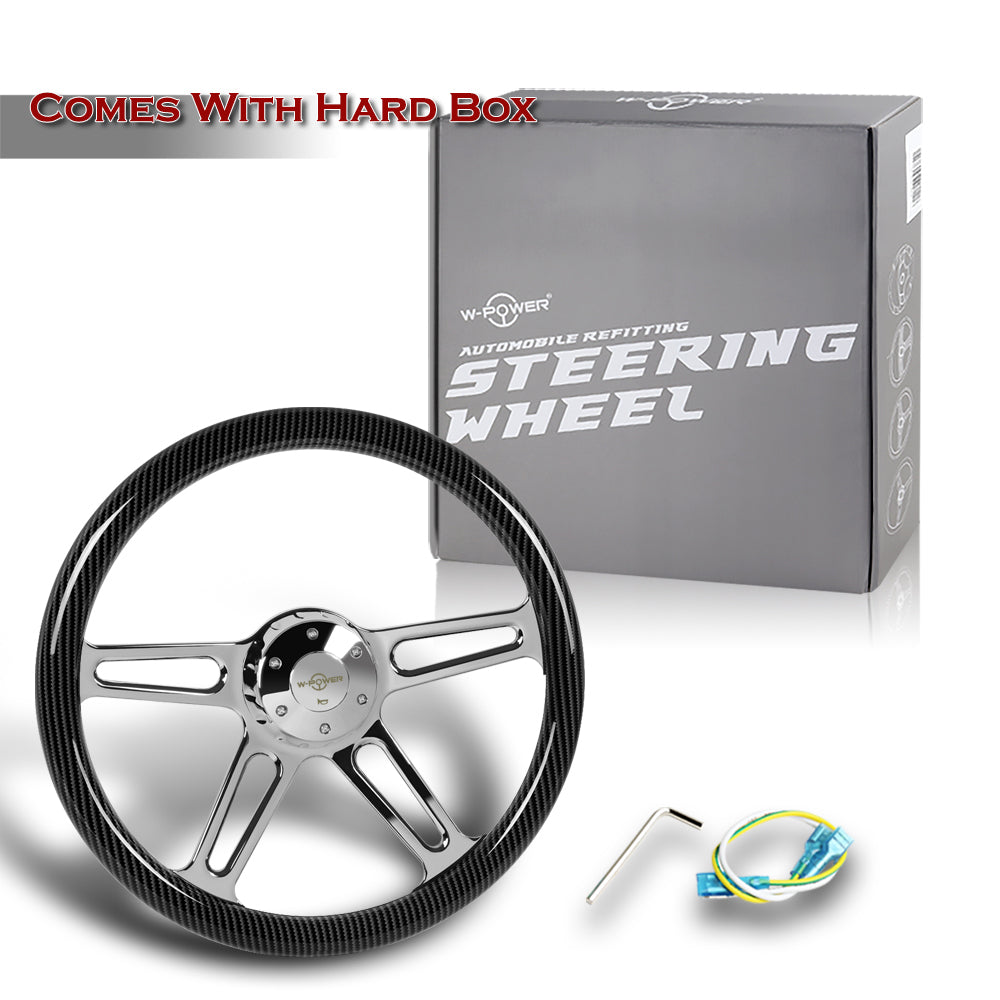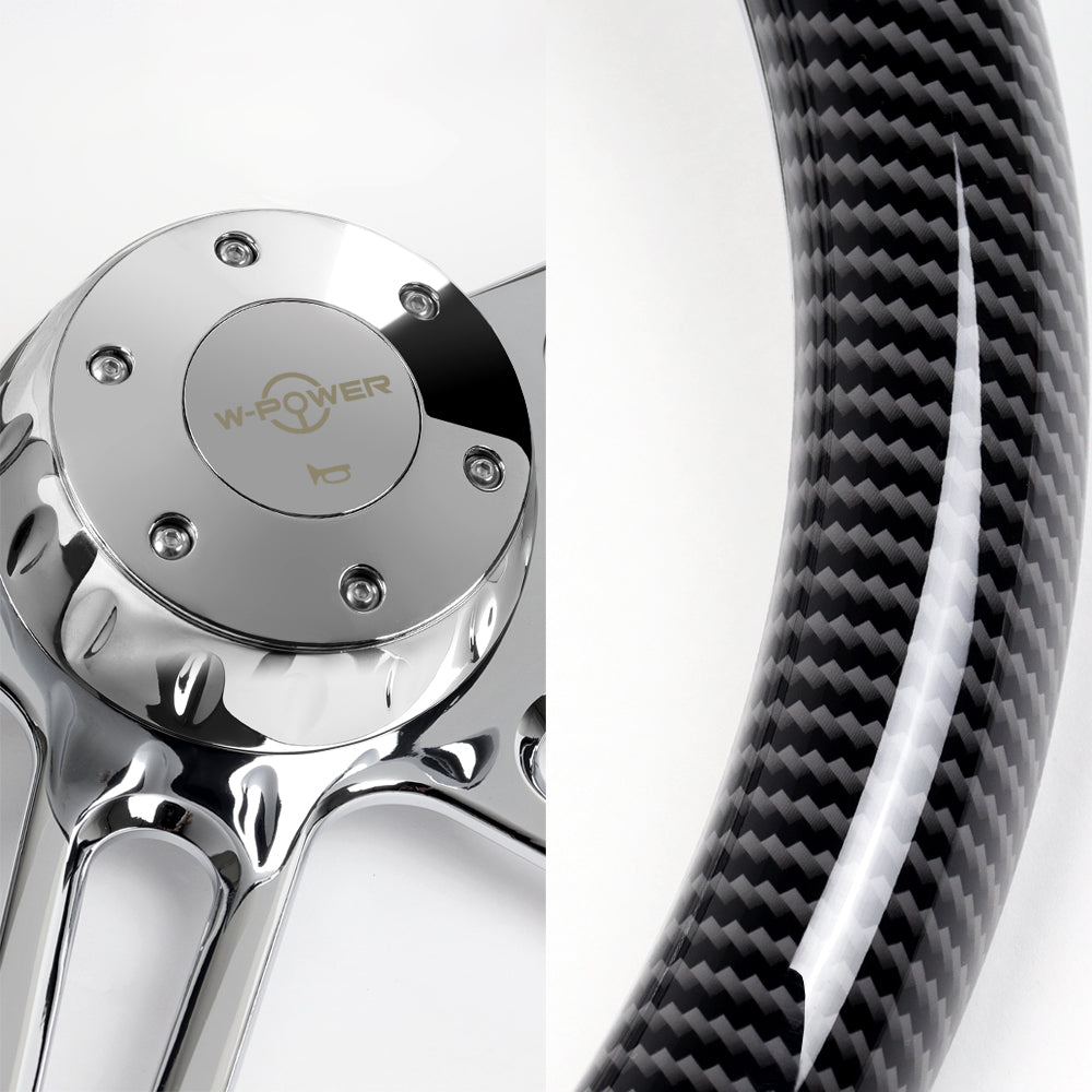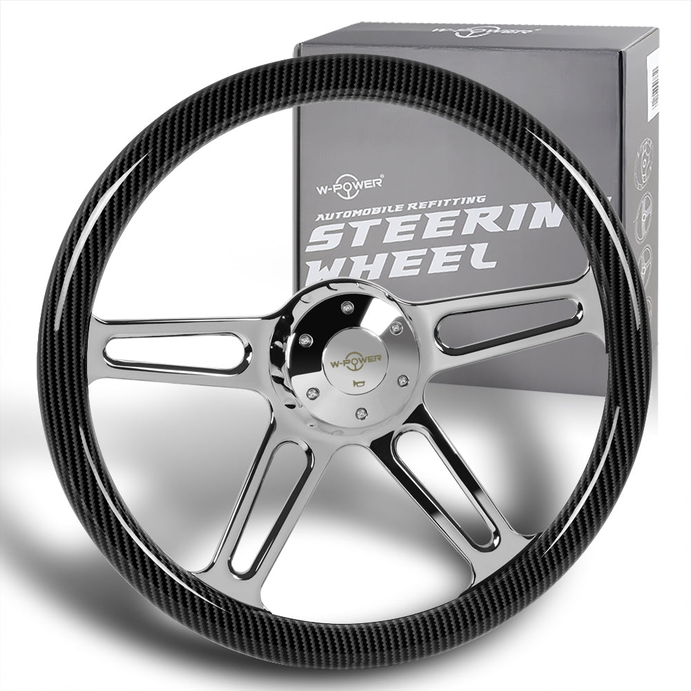 W-Power 18" 457mm 5-Bolt Hole With Aluminum Finished 4-Spoke Half Wrap Steering Wheel -Carbon Fiber Painted Grip/Chrome Center Spoke