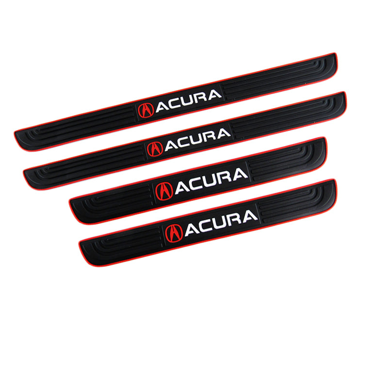 Acura Set Car Door Scuff Sill Rubber Cover Panel Step 4PCS Red Border Protector with Seat Belt Covers