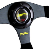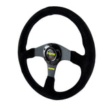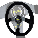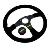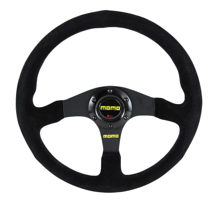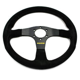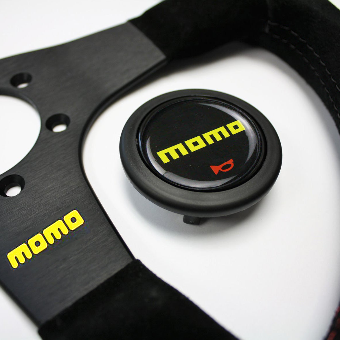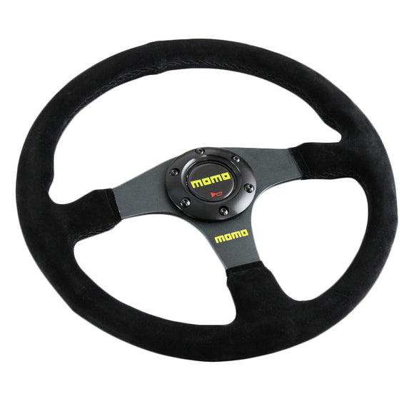 14" MOMO Racing Black Stitching Suede Sport Steering Wheel with Horn Button Universal