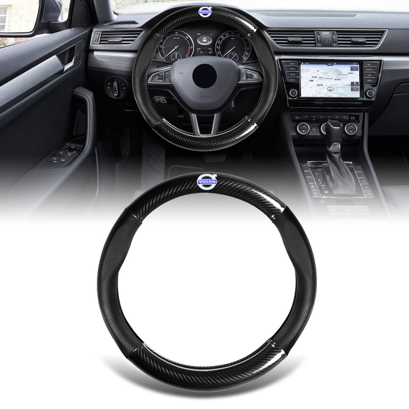 15" Carbon Fiber Style Quality Leather Car Steering Wheel Cover For All VOLVO NEW x1